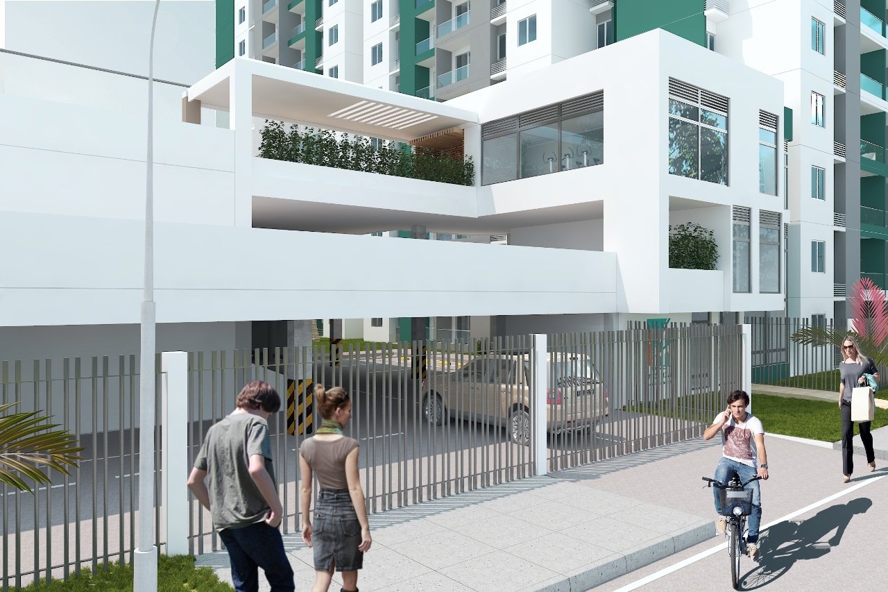 Está conformado por dos torres de 12 pisos, parqueaderos privados, red contraincendios, un salón social, terraza BBQ, piscina para adultos y niños, juegos infantiles, gimnasio semidotado, cancha múltiple y planta eléctrica en zonas comunes.